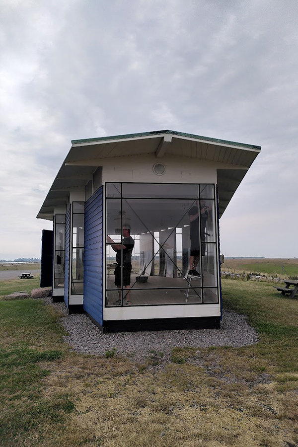 Bredvid Ottenby fågelstation längst ner på södra Öland ligger det ett litet blått hus. Huset med sina häftiga vinklar och stora glaspartier ritades av Jan Gezelius på uppdrag av BirdLife Sverige (då kallat Sveriges Ornitologiska Förening) och stod klart 1961. Genom åren har huset, som uppfördes som flyttfågelmuseum, även lockat vallfärdande arkitekter som häpnats över den geniala arkitekturen – en välkommen bonus.
