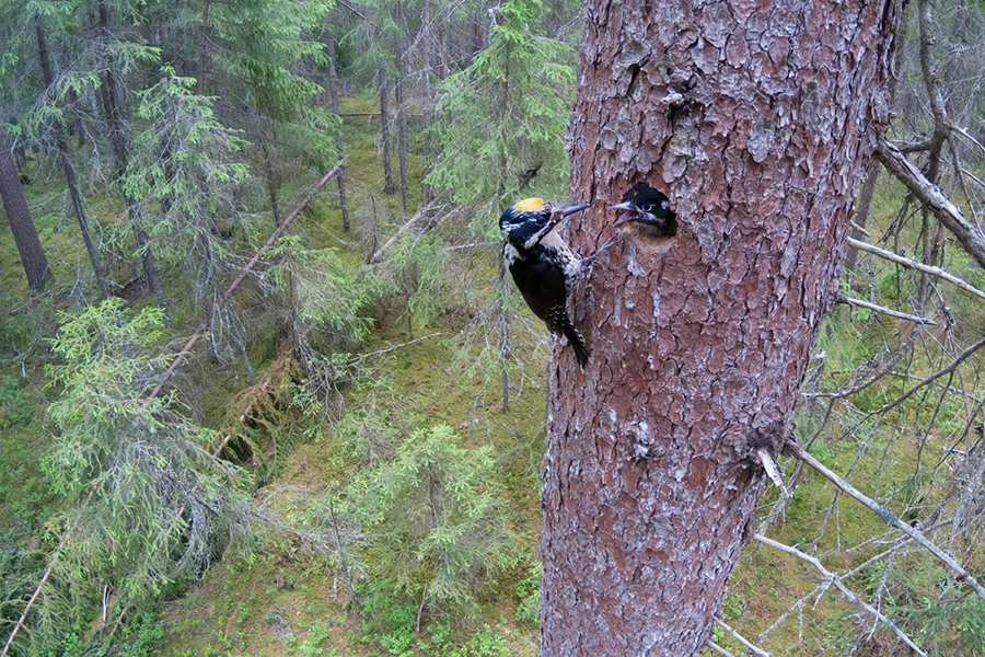 Tretåig hackspett i SCA:s mångfaldspark i Sörgraninge. Foto: Fatima Boukarchid